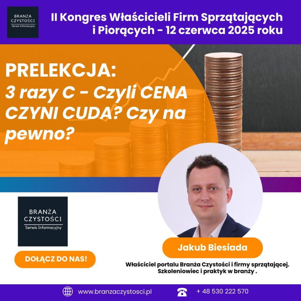 Nie czekaj – dołącz do II Kongresu Właścicieli Firm Sprzątających i Piorących! Czeka na Ciebie solidna dawka wiedzy, praktyczne warsztaty i najlepsi eksperci z branży.📅 Zarezerwuj swoje miejsce już teraz:👉 Link do zapisów Liczba miejsc ograniczona!